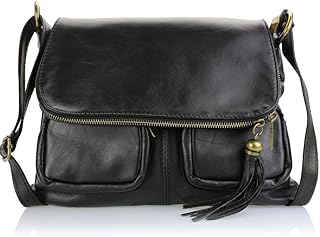 Cassandra' Sac à Main en Cuir pour Dames Sac à Main en Cuir de Mode Sac à bandoulière et Sac à bandoulière en Cuir véritable, Couleur:Noir