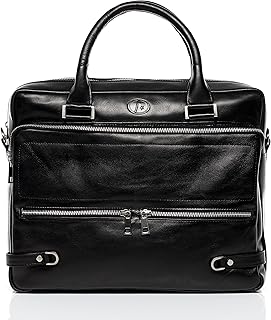 Sac bandoulière Ordinateur Cuir véritable 15' Leandro Sac Porte-Document en bandoulière Grand - Homme Sac Messager école Etudiante Travail Noir