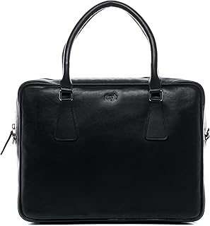 FERGÉ Sac bandoulière Ordinateur Cuir véritable 15' Beth Sac Porte-Document en bandoulière Grand Sac Messager école Etudiante Travail Noir