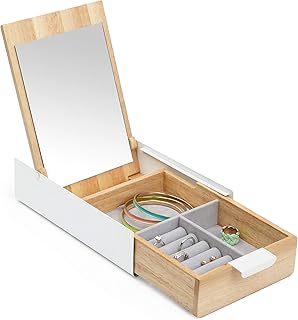 Umbra Stowit 290245-668 Bijoutier, Blanc/Naturel & Reflexion storage box. Boîte à bijoux Reflexion, compartimentée et avec miroir. En bois naturel et métal blanc. Dimension 23.5x14x5.8cm