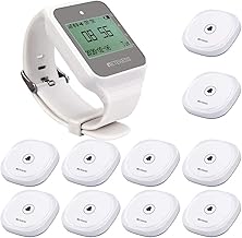 Retekess TD108-TD017 Restaurant Pager, Système d'Appel sans Fil avec Une Touche Touche Bouton IP54 Étanche, pour Restaurants, Bars, Hôtels et Cliniques (1 Récepteur de Montre et 10 Boutons d'Appel)