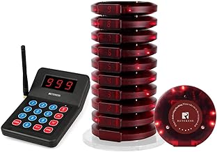 Retekess T116A Bipeur Restaurant Mini Système d’Appel Pager System 10 Bipper Écran Tactile 20H 999 Canaux 300 Mètres pour Restaurant Hôtel Snack Bar Rester Distanciation Sociale en Attente