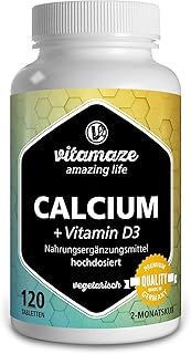 Calcium + Vitamine D3 à Haute Dose, 600 mg de Carbonate de Calcium + 400 UI de Cholécalciférol par Jour, 120 Comprimés Végétariens pour 2 Mois, Complement Alimentaire sans Additifs Inutiles