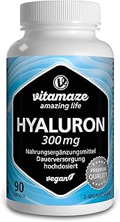 Vitamaze® Acide Hyaluronique 90 Gélules Pur et Forte 300mg par Gélule Vegan Pendant 3 Mois, Grande Biodisponibilité, Micro-Molecular 500-700 kDa, Complement Alimentaire sans Additifs Inutiles