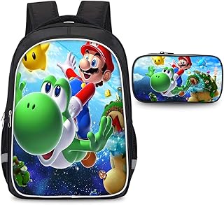 Super Mario Sacs à Dos Loisir Cool Sac À Dos Primaire Sac D'école pour Filles Garçons Formateur Sac À Dos Enfants Voyage Sac + Trousse (Color : A12, Size : 30 X 17 X 42cm)