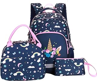 School Backpack Set pour garçons et Filles, Ensemble de Sac d'école 3 en 1 - Sac d'école, Sac Thermique, Sac à Stylo Sac de Livre léger Sac Quotidien Sac à Dos décontracté (Unicorn)