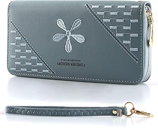 Portefeuille Femme,Longue Pochette Portefeuille,Grande Capacité Porte-Cartes Porte-Monnaie Zippé Portefeuille,Dragonne Amovible Portefeuille,PU Cuir Motif Prune Porte-Monnaie avec Fermeture éclair