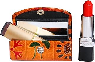 Étui à rouge à lèvres en cuir – Organiseur pour sac à main – Support pour rouge à lèvres – Cuir souple durable – Kit de rangement avec miroir (marron avec motif)