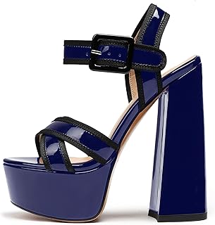 Mode Talons Hauts Sandales - 6' Escarpins Talon Bloc Sangle de Cheville - Sandales Bride Cheville Femme