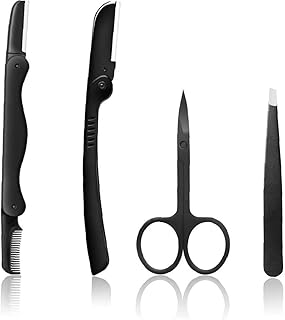 4 en 1 Kit Sourcils Sourcils rasoir, Sourcils ciseaux, pince à épiler les sourcils, brosse pour Sourcils Homme Femme, régleur du visage et des yeux Maquillage rasoir