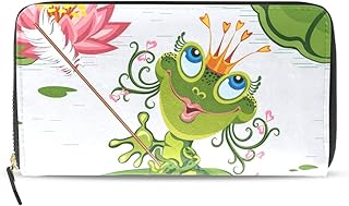 Portefeuille en Cuir pour Femme avec Poche zippée Motif Grenouille Princesse Lotus