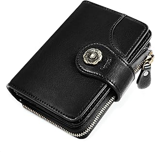 Portefeuille Femme Cuir Porte Monnaie - HOMPO Petit Portefeuille en Cuir pour Femmes Compagnon Portefeuille Femme avec RFID Blocage,16 Emplacements Cartes et 1 Poche Zippée Monnaie - Noir