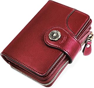 Portefeuille Femme Cuir Porte Monnaie - HOMPO Petit Portefeuille en Cuir pour Femmes Compagnon Portefeuille Femme avec RFID Blocage,16 Emplacements Cartes et 1 Poche Zippée Monnaie- Rouge