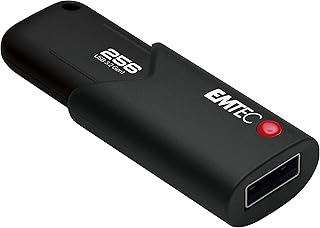 Emtec Clé USB 3.0 (3.2) Click Secure B120, Mémoire Flash Drive De 256 Go, Stockage Externe, Lecture 100Mb/S, Écriture 20Mb/S, Avec Logiciel D'Encryption AES260, Noire ECMMD256GB123
