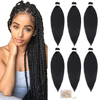 6Pack Pré-étiré EZ Tressage Cheveux Yaki Cheveux 24 pouces Noir Longs Extensions de Cheveux Synthétiques (1B #, 6 Pièces/Paquet)