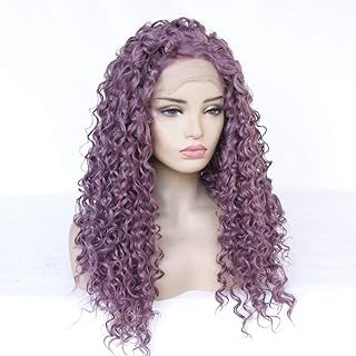 WJGSS Sexy Perruques de cheveux bouclés longs petits cheveux ondulés violets pourpres à la mode front lace perruques,Naturel Cheveux synthétiques côté supplémentaire pour femme Filles,16 pouces